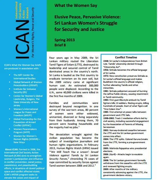 Home » Our Resources » Elusive Peace, Pervasive Violence: Sri Lankan Women’s Struggle for Security and Justice. (Spring 2013)