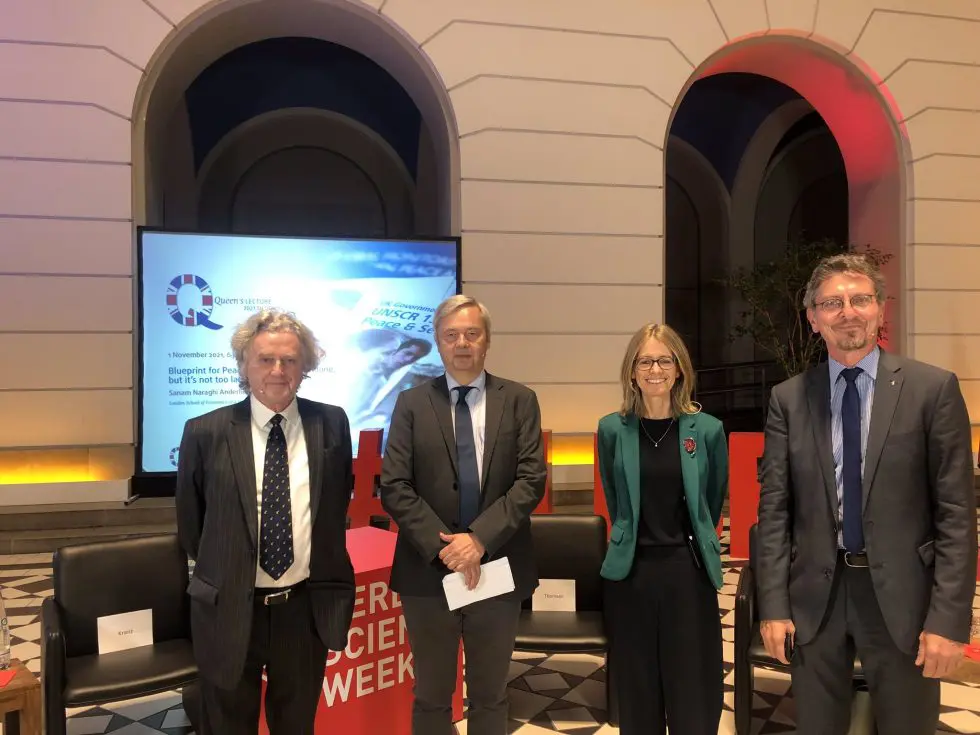“Those of us who live in peace take it for granted – it’s the invisible canvass upon which we paint and live our lives,” said Sanam Naraghi Anderlini, MBE in her opening remarks for the annual 2021 Queen’s Lecture. “When we put ourselves in the shoes of others – see them as we see ourselves, – we are all the same – regardless of our culture or accident of geography.”