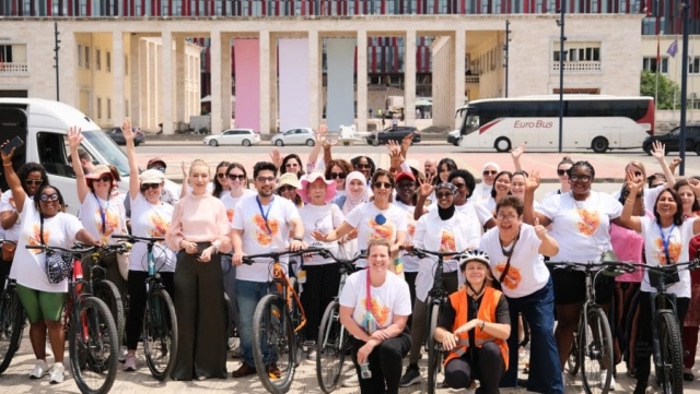 During the 10th ICAN Women, Peace, and Security Forum held in June 2024 in Tirana, Albania, women peacebuilders from around the world cycled through the capital, led by the city’s Bike Mayor and supported by the chair of the municipal council—two strong examples of Albanian women’s leadership. The Ride for Peace was held in honor of the late Sudanese peacebuilder, Enass Muzamel, who was passionate about cycling to reclaim public space for women in a context with decreasing civic space and to push back against cultural and societal limitations placed on women.