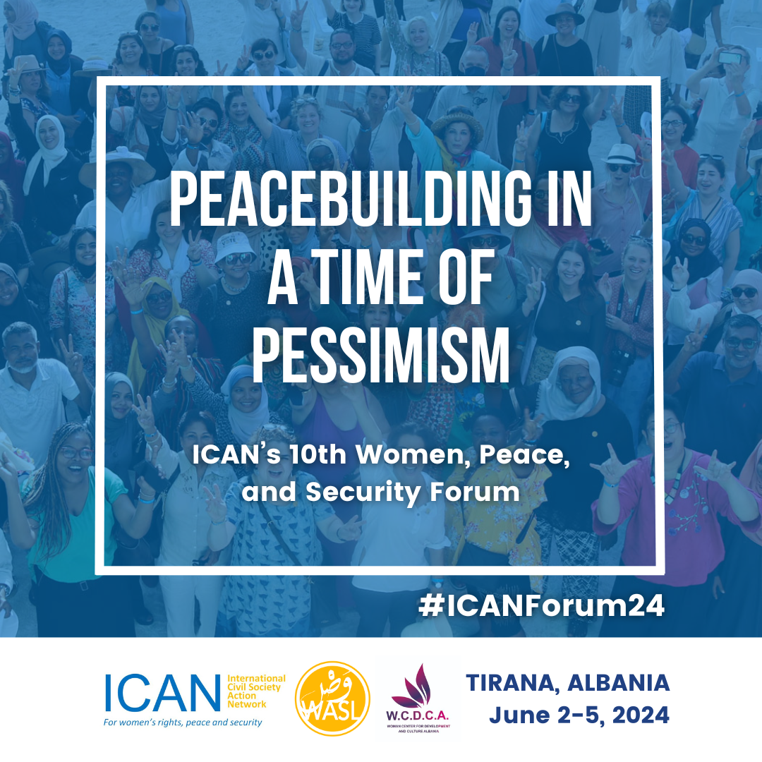 At a time when militarization is growing unchecked and increasingly normalized as the only approach to security, the ICAN Forum brings an alternative perspective into the global discourse from those who do not have the privilege of pessimism. ICAN’s 10th Forum will be hosted by the Women’s Center for Development and Culture Albania (WCDCA), bringing together women peacebuilders from over 40 countries in the Women’s Alliance for Security Leadership (WASL) in Tirana, Albania from June 2-5, 2024.