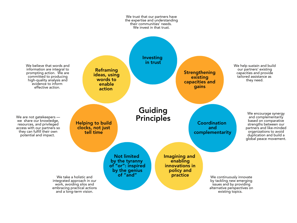 Foster a global movement of locally rooted women peacebuilders to have voice and influence in matters of peace, conflict, rights, and human security;