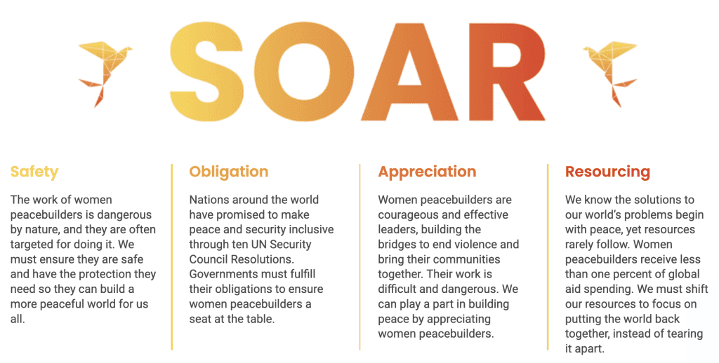 We are standing with women peacebuilders to SOAR toward a future in which we all can flourish—will you join us?